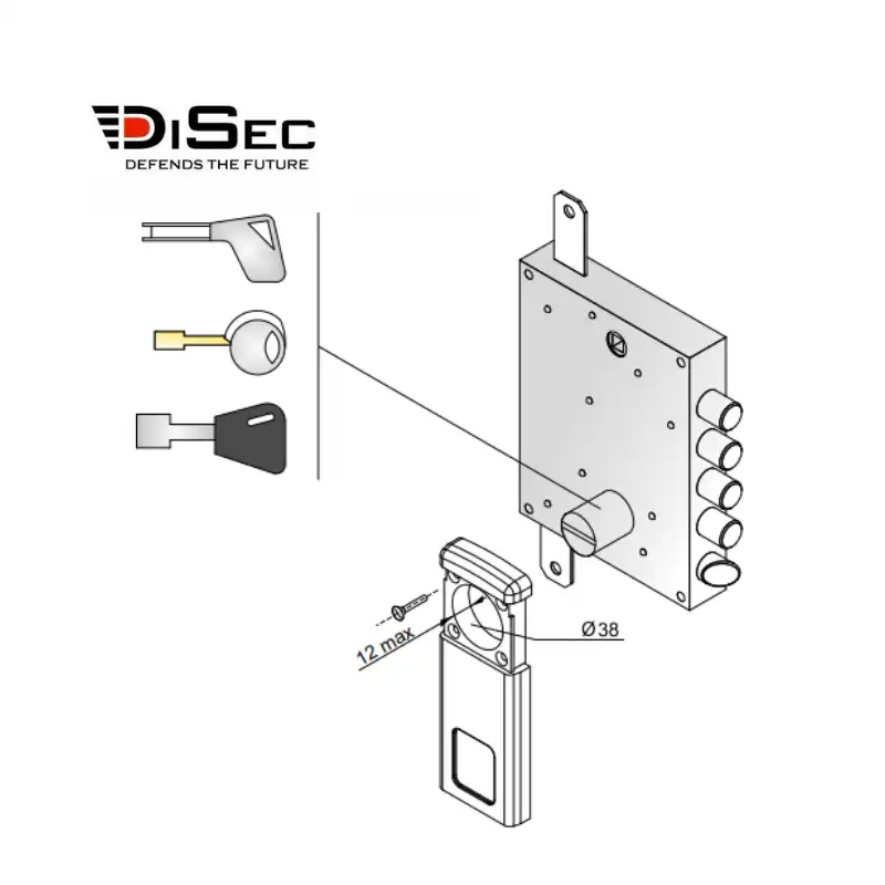 El Escudo magnético MG410 DM DISEC  esta especialmente indicado para proteger cerraduras de POMPAS de las marcas FICHET, SIDESE, MOIA, MOTTURA, CR, KASSEL, ESETY, TOVER, POTENT