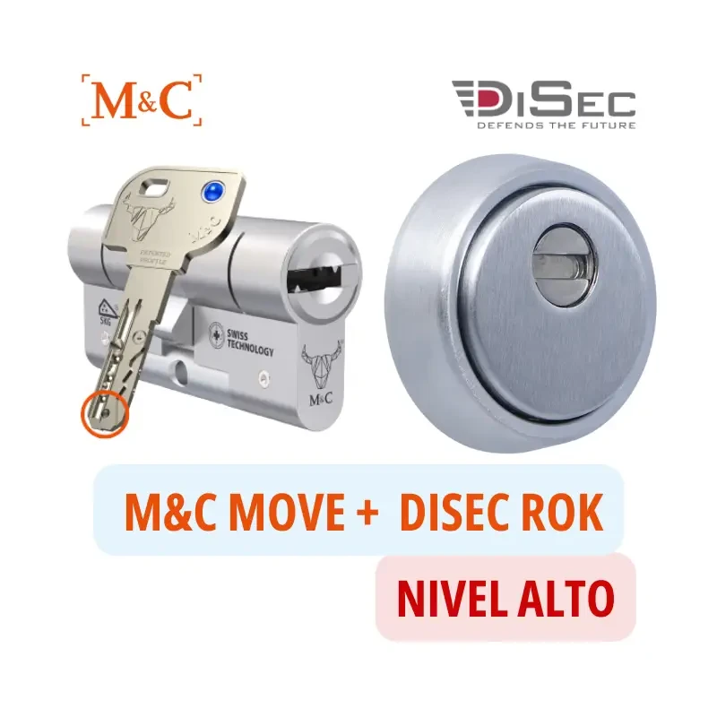 El Pack seguridad MC Move y Disec ROK combina lo mejor en seguridad. Por un lado, el cilindro M&C Move ofrece tecnología avanzada, y por otro, el escudo Disec BD 280 ROK proporciona máxima resistencia frente a ataques físicos. Juntos, son la solución ideal para proteger tu hogar o negocio.